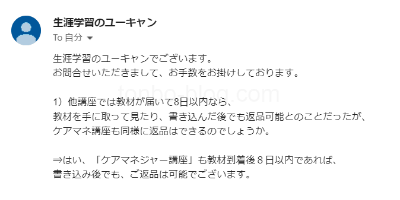 返品に関して、詳しくはユーキャンのページにて。